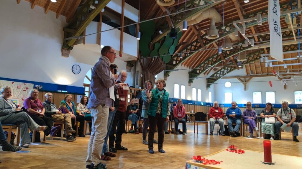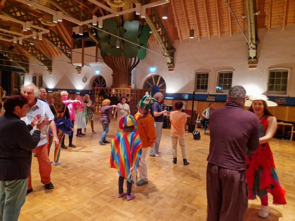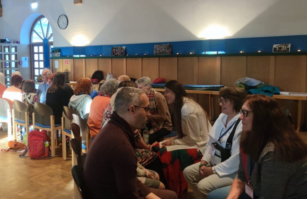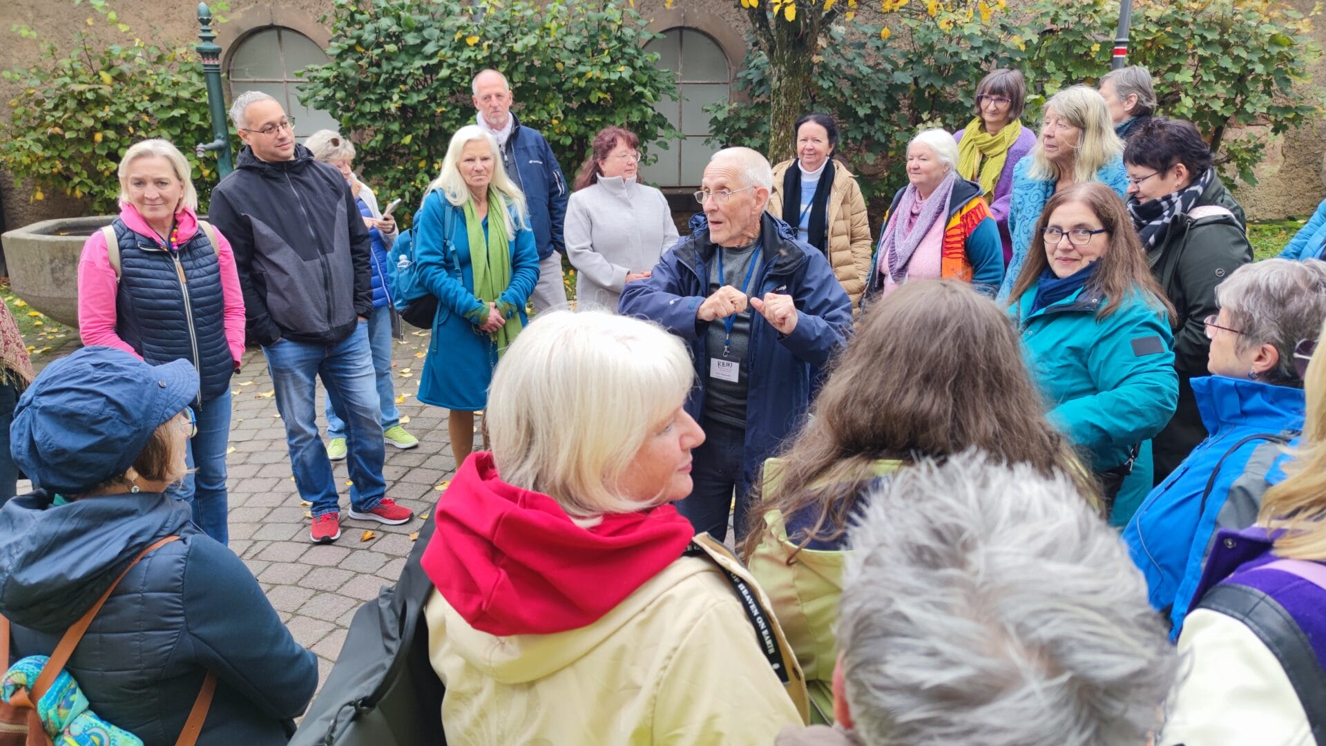 Nach der Vorstellungsrunde und dem Friedenstanz war Zeit für den Reiki-Austausch und am Abend, nach dem Abendessen wurden wir auf dem Marktplatz von Hans und Brigitte Trumpf überrascht, die mit einem anderen Paar in Barock-Kleidung zwei Menuett-Tänze aufführten.